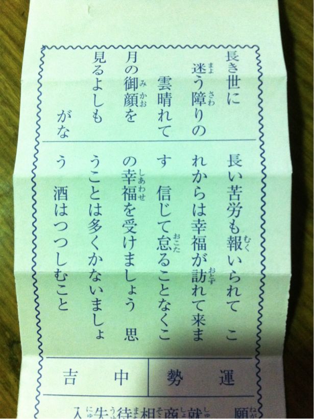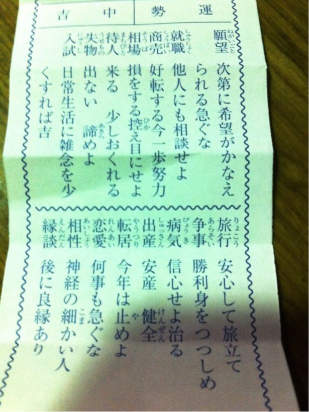 結果は中吉でしたが、書いてあることが僕の状況にピッタリ当てはまっていてびっくりしました(笑)